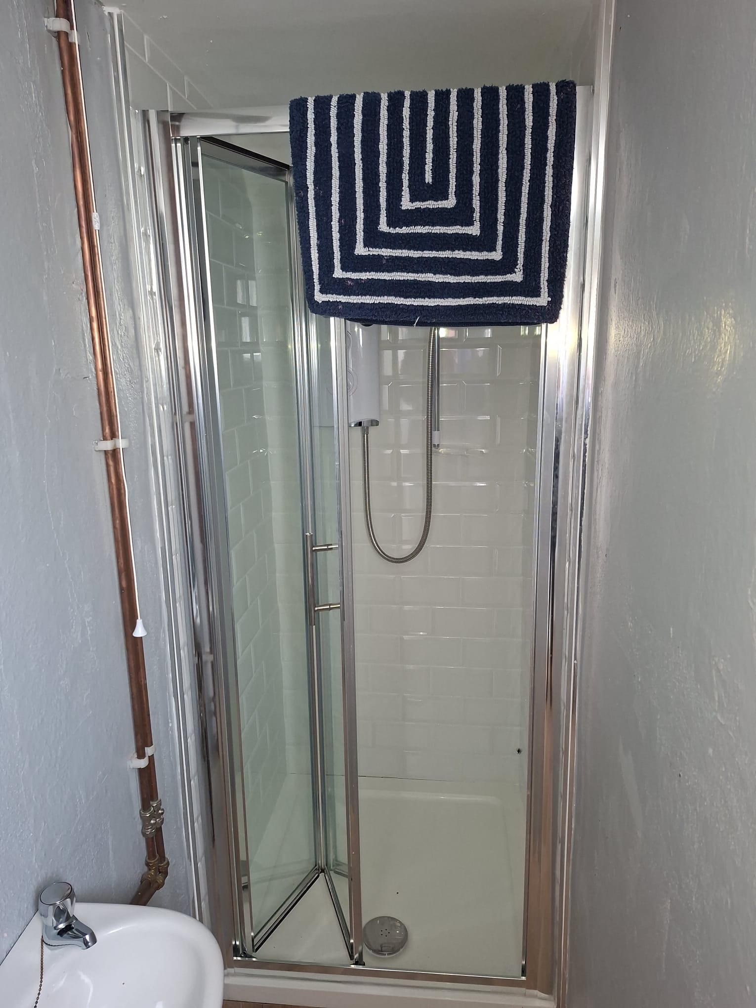 Shower Room – Vinyl flooring; stand in electric shower; WC; WHB; fitted press