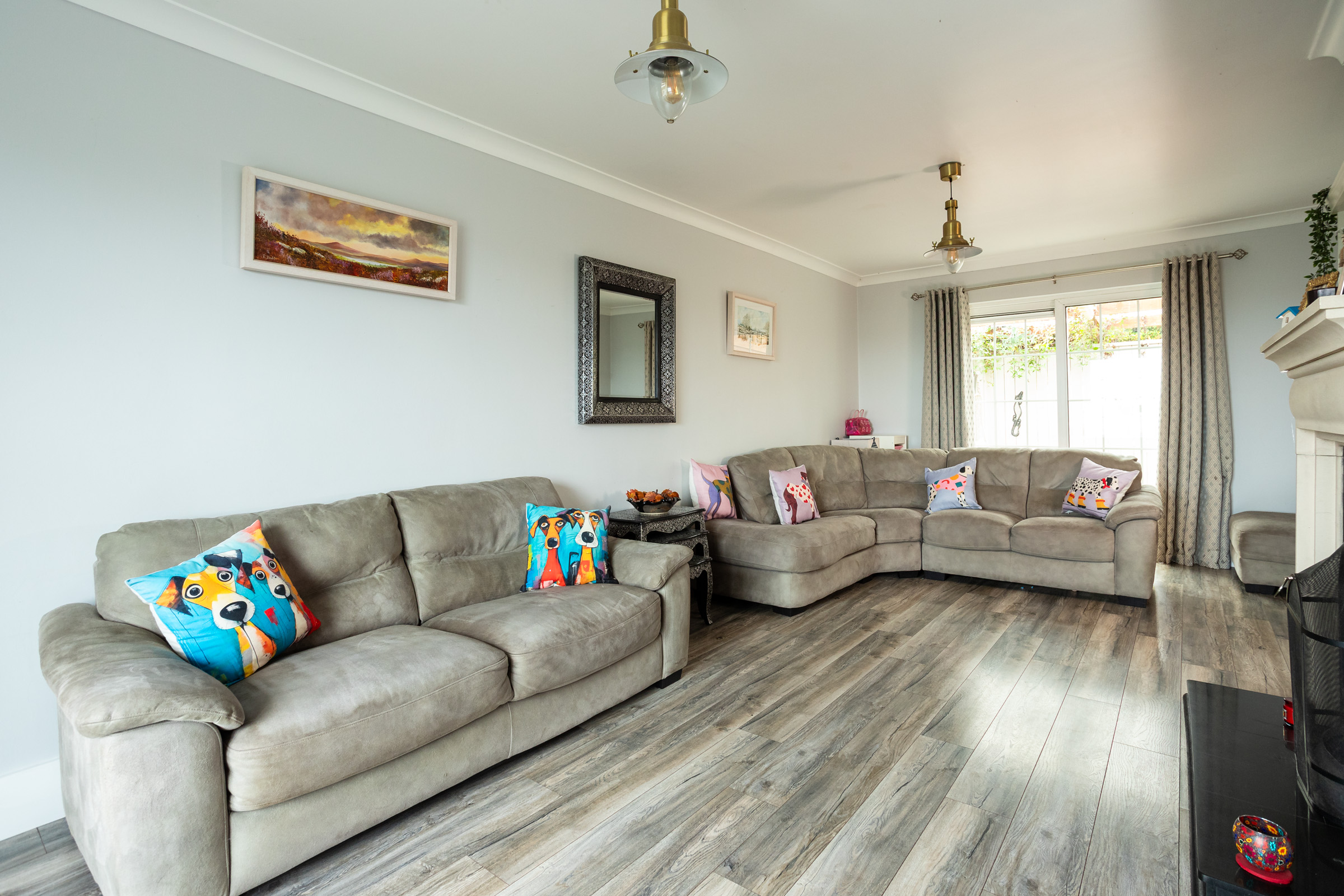 Sitting Room – Wood effect laminate; floor; granite fireplace; dual aspect; bay window; patio door to rear coving