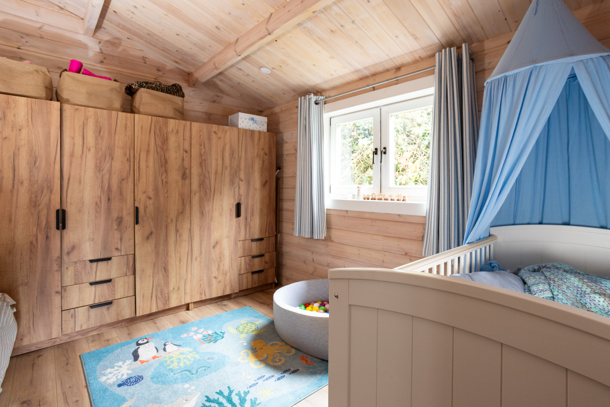 A standout feature is the detached “Cabin Garden Room”, offering two bedrooms, a fitted kitchen/living space, and bathroom. This feature is ideal for guest accommodation, a home office, or multi-generational living.
