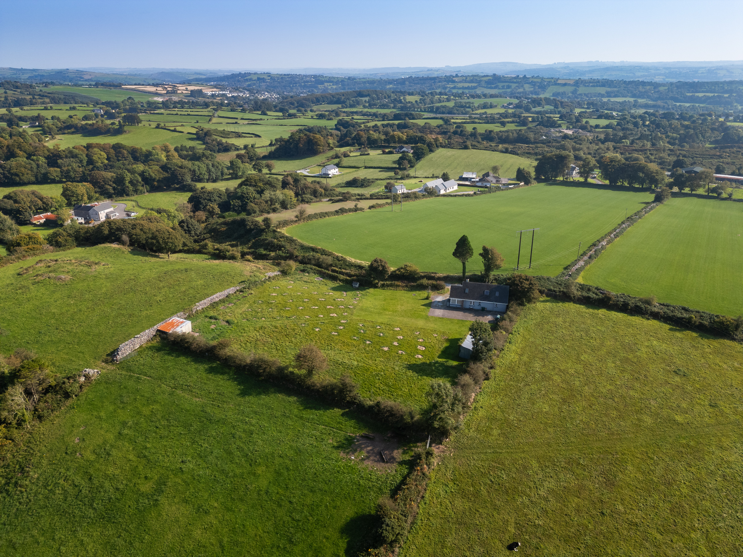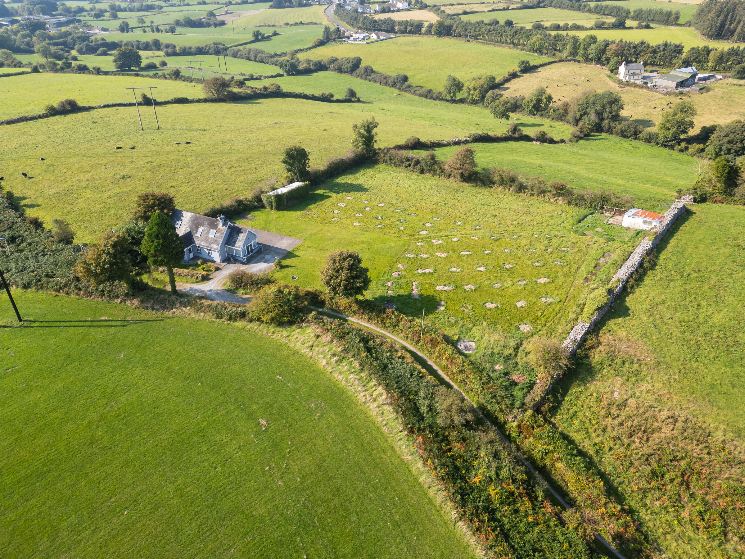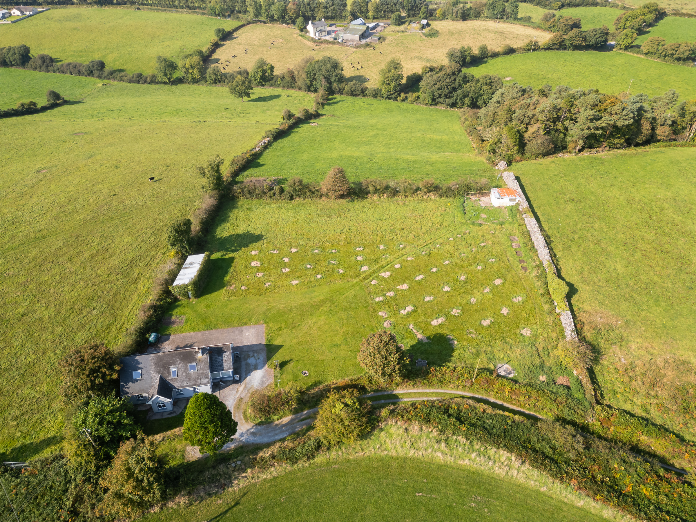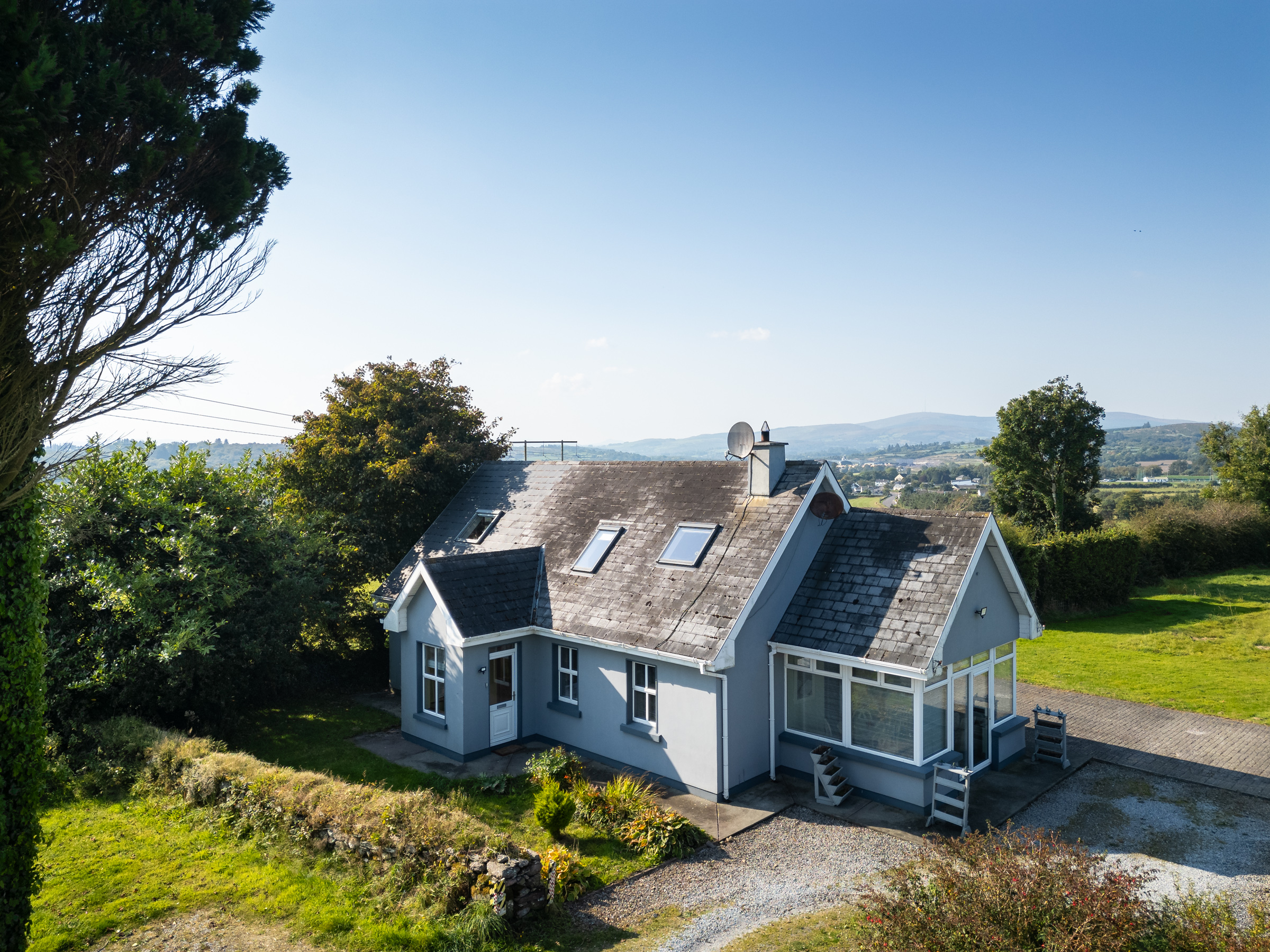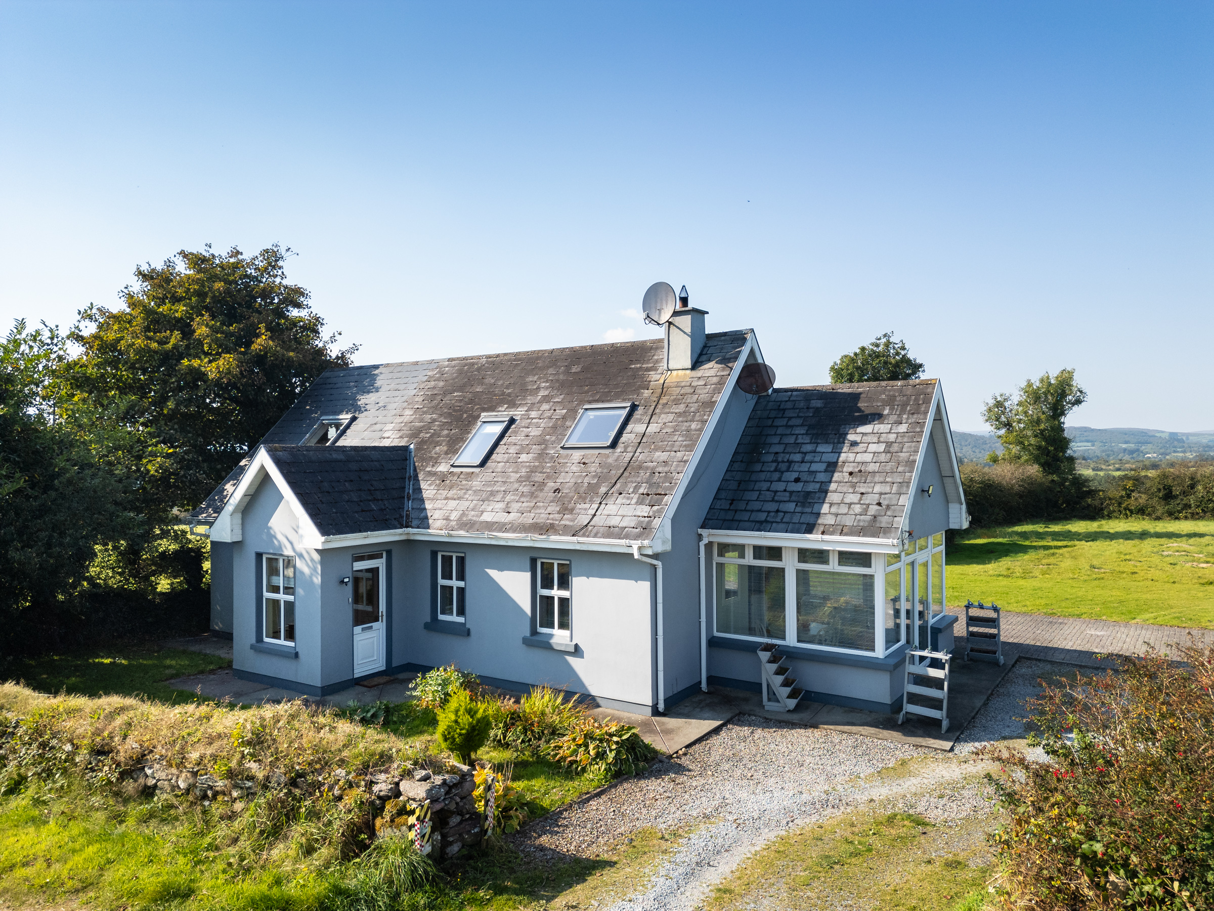 The home sits on a very private large, elevated site with beautiful views of the local countryside including Macroom Town and Clondrohid Village. The boundary includes original stone-built walls, driveway and large patio area along with 2 no. large outbuildings.